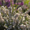 Winterheide (Erica carnea) is een kleurrijke en winterharde plant die zeer geschikt is voor grafbeplanting. Ze bloeit rijkelijk van eind december tot begin april, zelfs bij sneeuw, en brengt levendigheid in de sombere wintermaanden. De kleine bloemen variëren van wit tot roze, rood en paars, en trekken bijen en vlinders aan. Winterheide is groenblijvend en gedijt goed in zon of halfschaduw. Ze heeft een voorkeur voor zure, goed doorlatende grond die niet te nat blijft. Voor wat betreft onderhoud is ze relatief eenvoudig: na de bloei volstaat een jaarlijkse snoei van ongeveer een derde om de plant compact en gezond te houden. Nadelen zijn dat ze minder geschikt is voor kleigrond en dat ze zonder snoei kan verhouten en minder bloeien.